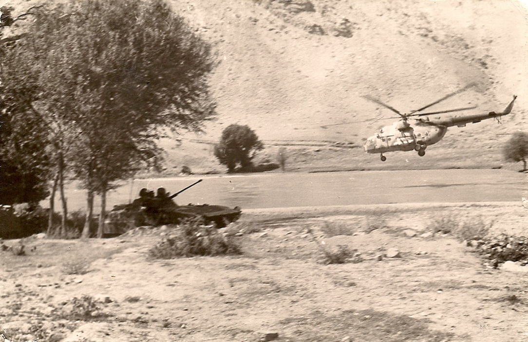 | Mi-8 Hip Helicopter Landing Near BMP |