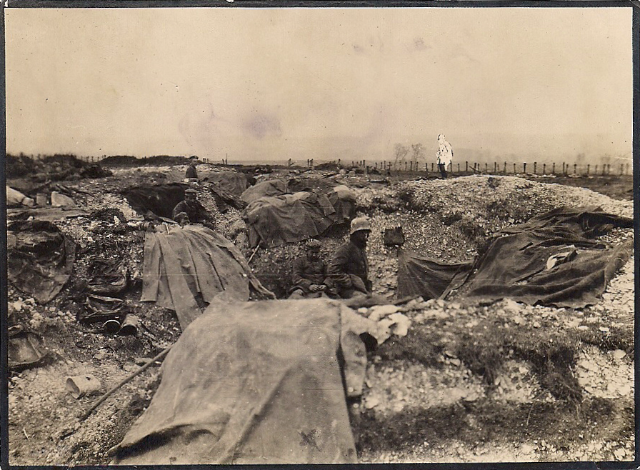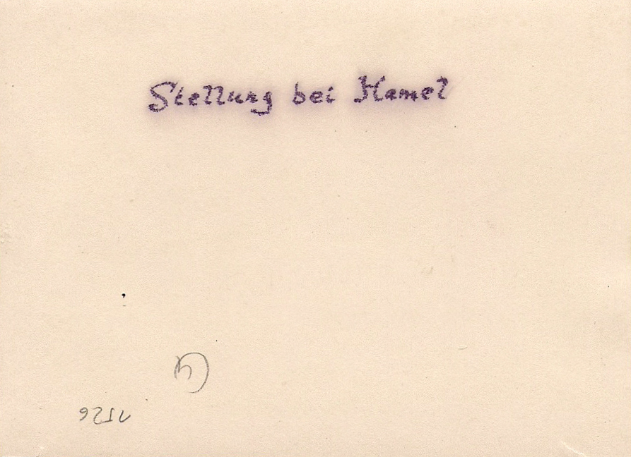 | German trenches near Le Hamel sight of a successful attack by Australian and American forces in 1918. Back of picture has inscribed "Stellung bei Hamel" which translates to "Position at Hamel". |