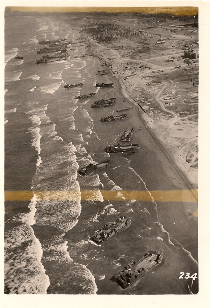 | Landing craft beached by heavy seas. Photograph #234 |