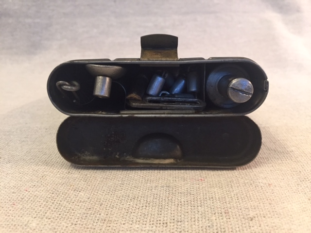 | WW2 German K98 cleaning kit. The only marking on this appears to be G. Appel as a maker mark on the top of the can. |