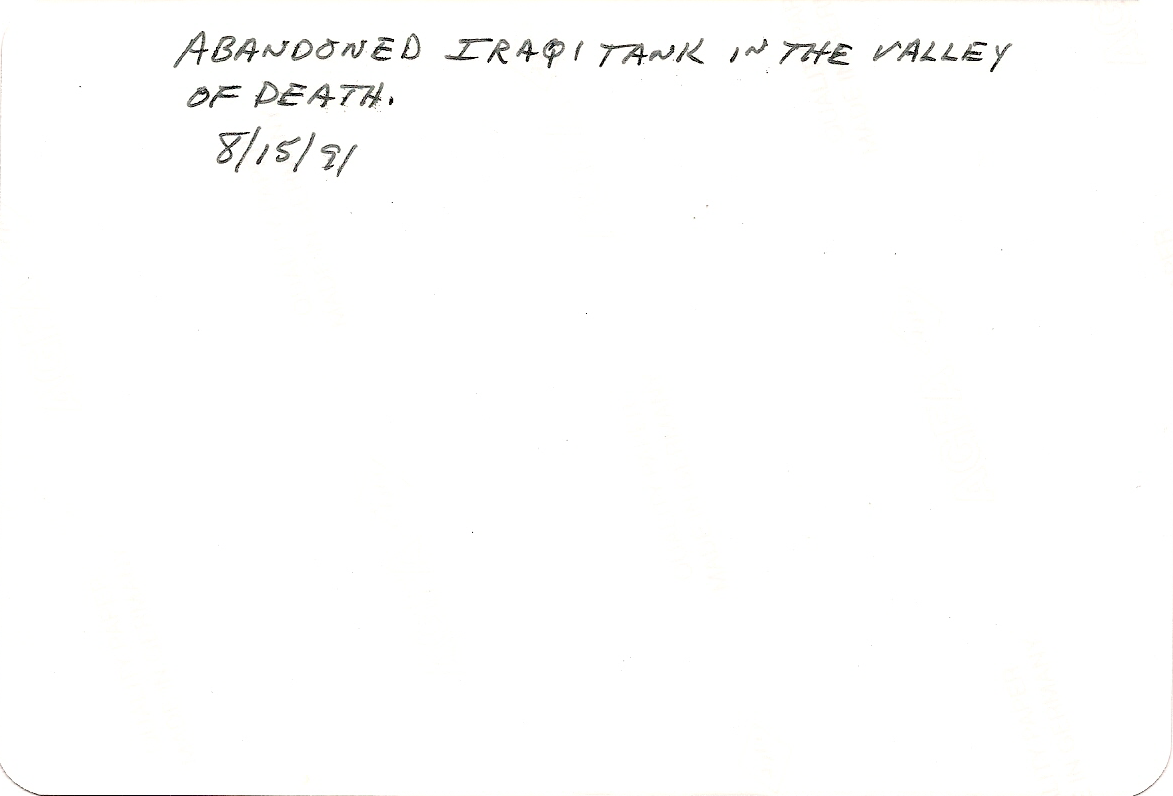 | An abandoned T-55 tank in the so called Valley of Death, north of Kuwait City. Taken August 15th, 1991 |